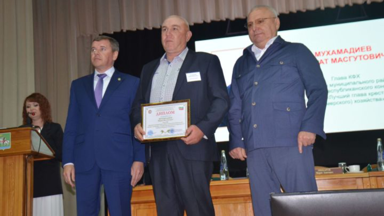 Бүләкне Марат Мәсгут улы Татарстан Республикасы авыл хуҗалыгы һәм азык-төлек министры Марат Җәббаров һәм Татарстан Республикасы Дәүләт Советында "Бердәм Россия" фракциясе әгъзасы Азат Хамаев кулыннан авыл халкының эшлекле активлыгын арттыру мәсьәләләре буенча зона семинарының пленар өлешендә алды.