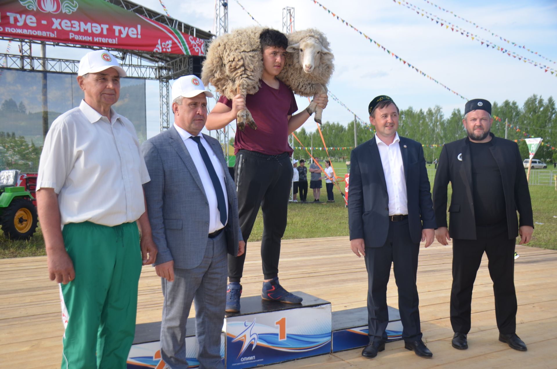 Ярышлардан соң Салагыштан Илнур Хәбибуллин Сабантуйның абсолют батыры исеменә лаек булды. Район башлыгы Ленар Нургаянов һәм "Манзара" премиясенә нигез салучы Айдар Шәймәрданов аңа төп бүләк - тәкә, шулай ук махсус бүләк - "Батыр" мини-трактор тапшырдылар. Егетләр арасында төп бүләккә Иж-Бубыйдан Әлмәттән Әмир ия булды.