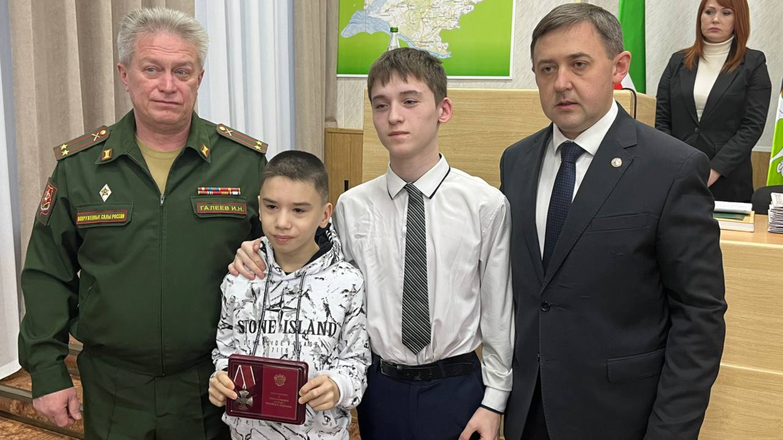 Бүләк һәлак булган хәрби хезмәткәрнең улларына - Алмаз һәм Кириллга тапшырылды. Геройның истәлегенә бер минутлык тынлык урнашты.