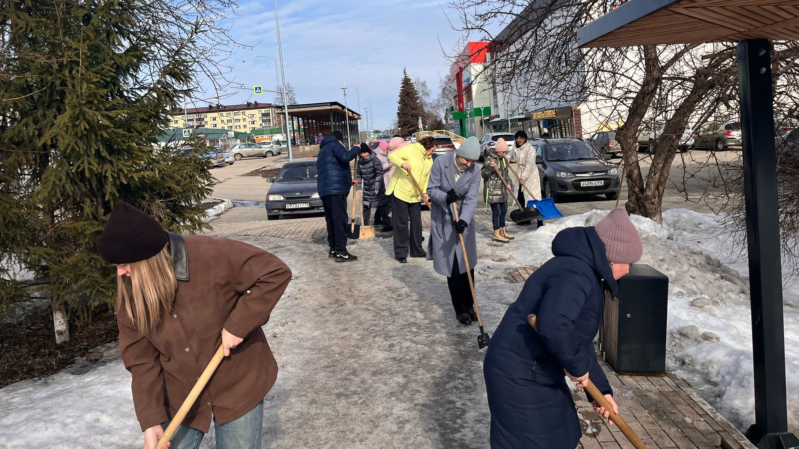 Ольга Еремина җитәкчелегендәге "Надежда" социаль үзәктә эшләүче хезмәткәрләр беркетелгән территорияне җыештыру буенча өмә үткәрделәр!