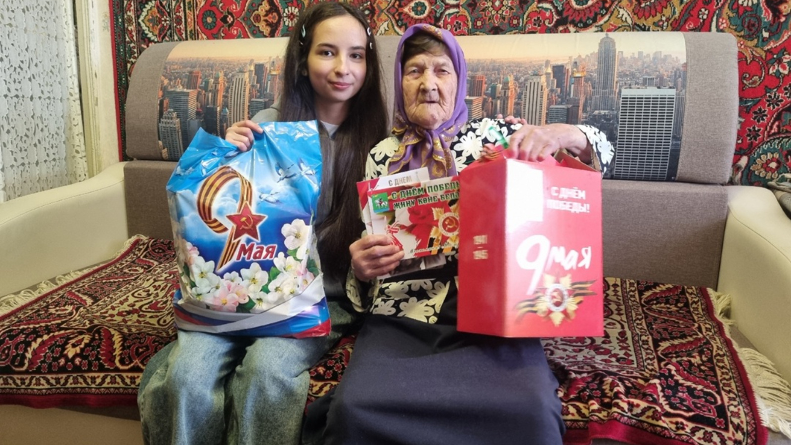 Беренче бүләкне ветеран Гаилә Ибраһимовна Пономарева алды. Аңа азык-төлек җыелмаларын Яшьләр үзәге хезмәткәрләре һәм активистлары тапшырды.