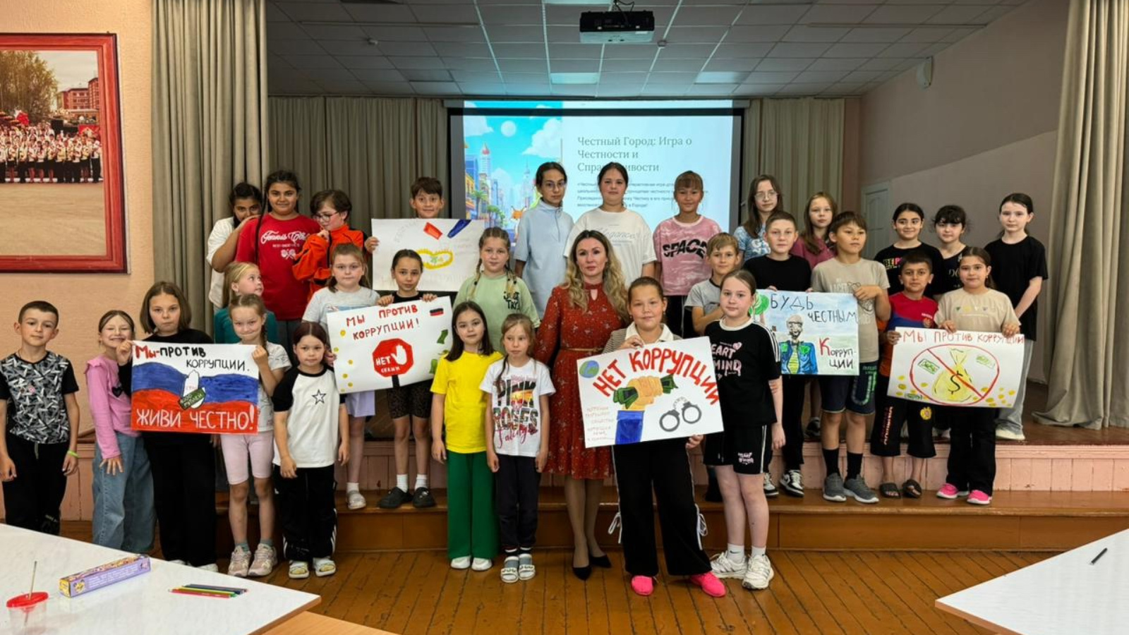Лекциядән соң балалар үзләренең креативлыгын һәм рәсем буенча талантын күрсәттеләр. Һәркем коррупциягә каршы идеяләрне һәм намуслы булырга өндәүләрне чагылдыра торган үз рәсемен булдырды. Бу шедеврлар безнең лагерьны бизәп кенә калмады, ә коррупциягә каршы көрәш кирәклеге турында мөһим юллама таралуга ярдәм итәчәк.