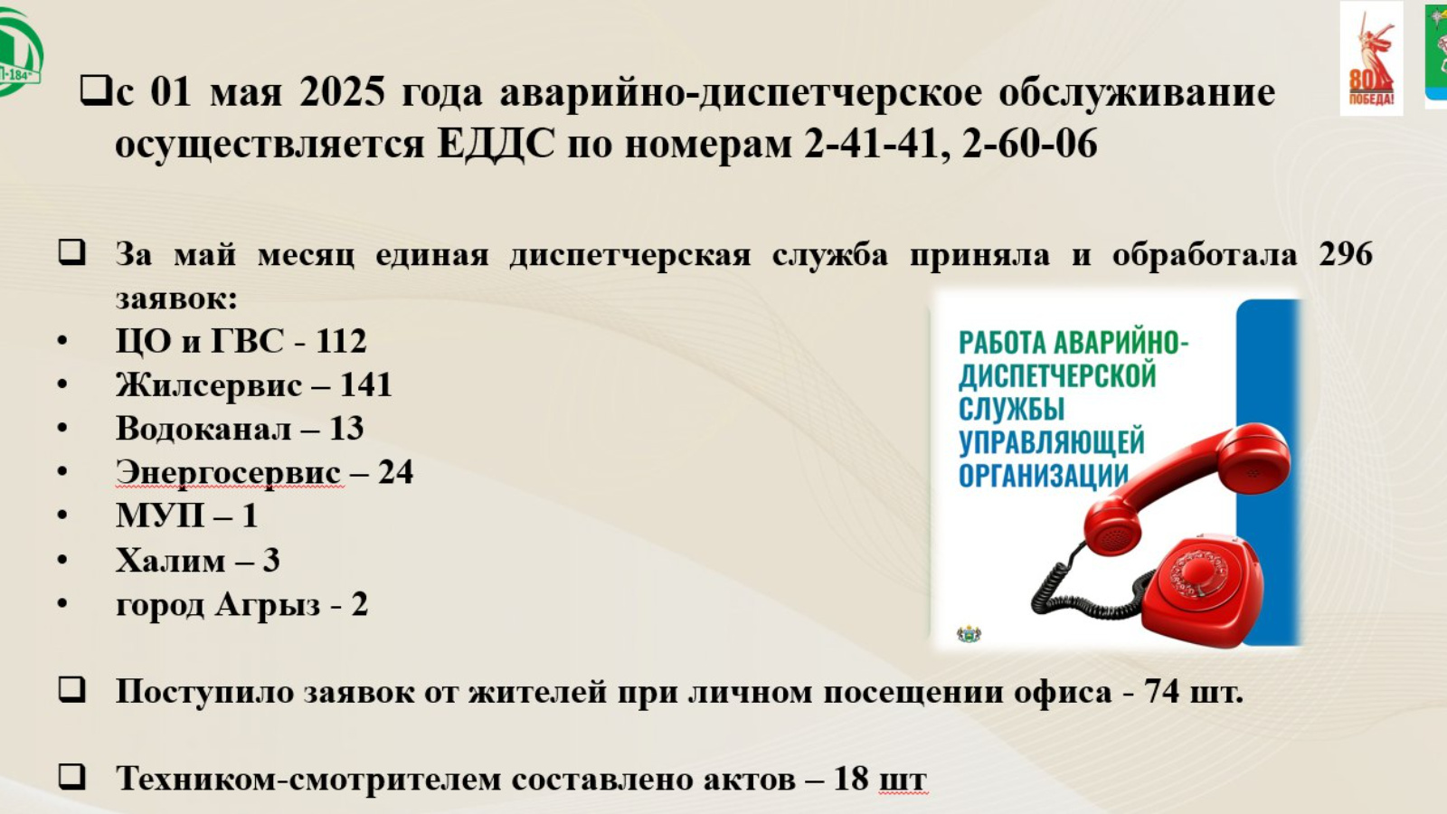 Исегезгә төшерәбез, авария-диспетчерлык хезмәтенең телефон номеры алышынды.