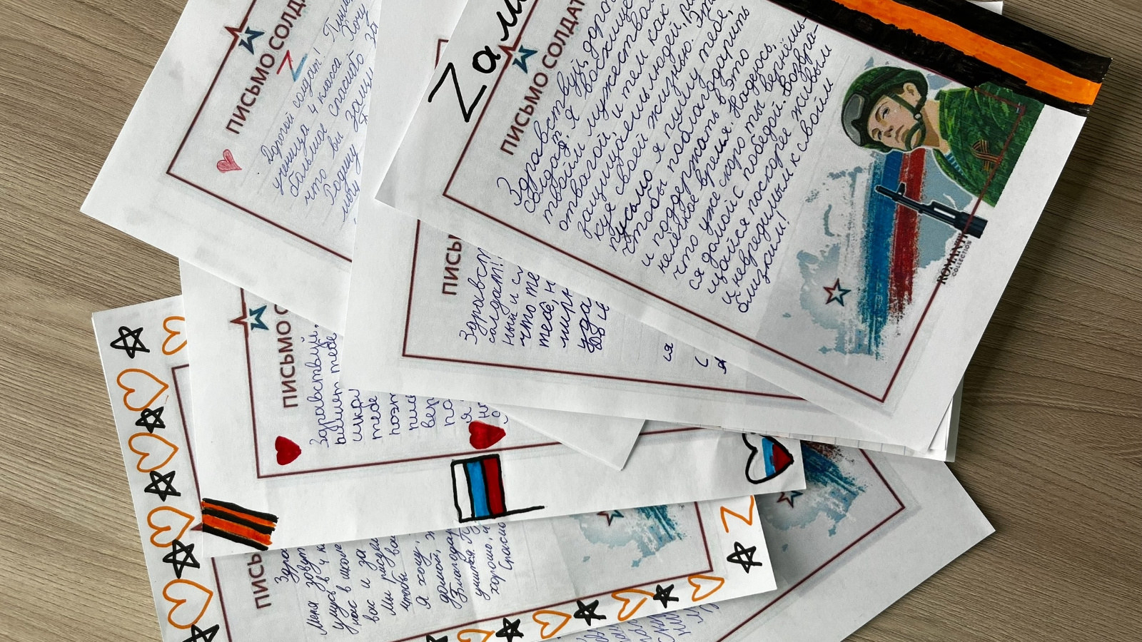 4 нче мәктәп укучылары свода катнашучылар өчен хатлар һәм рәсемнәр өстендә шундый сүзләр белән эшлиләр.