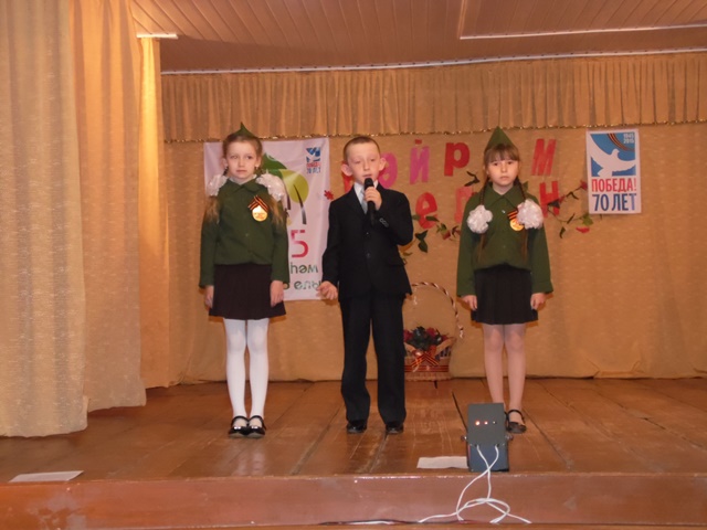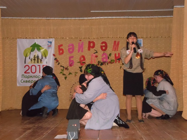 Девәтернә мәктәп укучылары Үлемсез полк маршында Бөек ватан сугышында катнашкан бабаларының ,ә мәктәп укытучылары ветеран-укытучыларын портретын күтәреп ветераннар алдыннан уздылар. Тантана авыл клубында дәвам итте. Мәктәп укучылар Бөек Җиңүнең 70 еллыгына багышланган әдәби- монтаң белән башлап җибәрделәр.