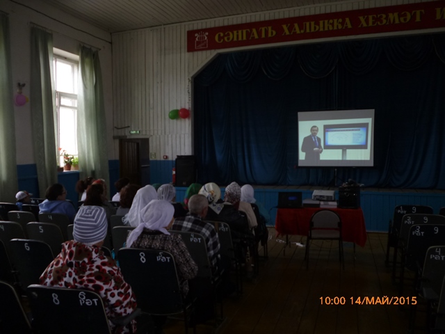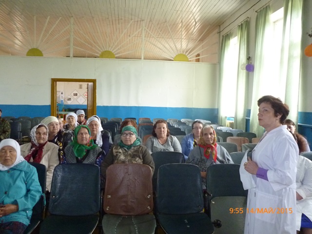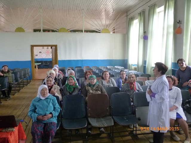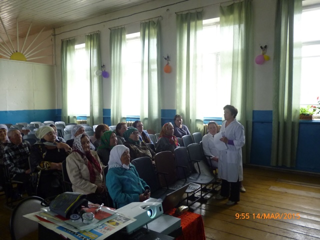 Залилова Г.Ш-ФАП җитәкчесе тема буенча чыгыш ясады. Экраннан РТ Сәламәтлек саклау министры Вафин А.Ю. ның йөрәк һәм кан тамырлары авырулары нилектән килеп чыга,аларны булдырмас өчен нинди чаралар куллану турныдагы чыгышы да күрсәтелде. Күргәзмә оештырылган иде һәм катнашучыларга медицина ярдәме дә (кан басымнары үлчәү) күрсәтү булды.