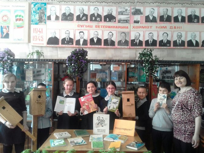 1 нче апрель юмор көне генә түгел, ул кошлар көне дә. “Кошларым” исемле күргәзмә һәм әңгәмә оештырдык. Быел экология елы уңаеннан “кызыл китап” ка кертелгән кошлар белән таныштык, барладык. Ә , егетләр сыерчыклар килүгә үзләре ясаган ояларны да алып килгәннәр иде.